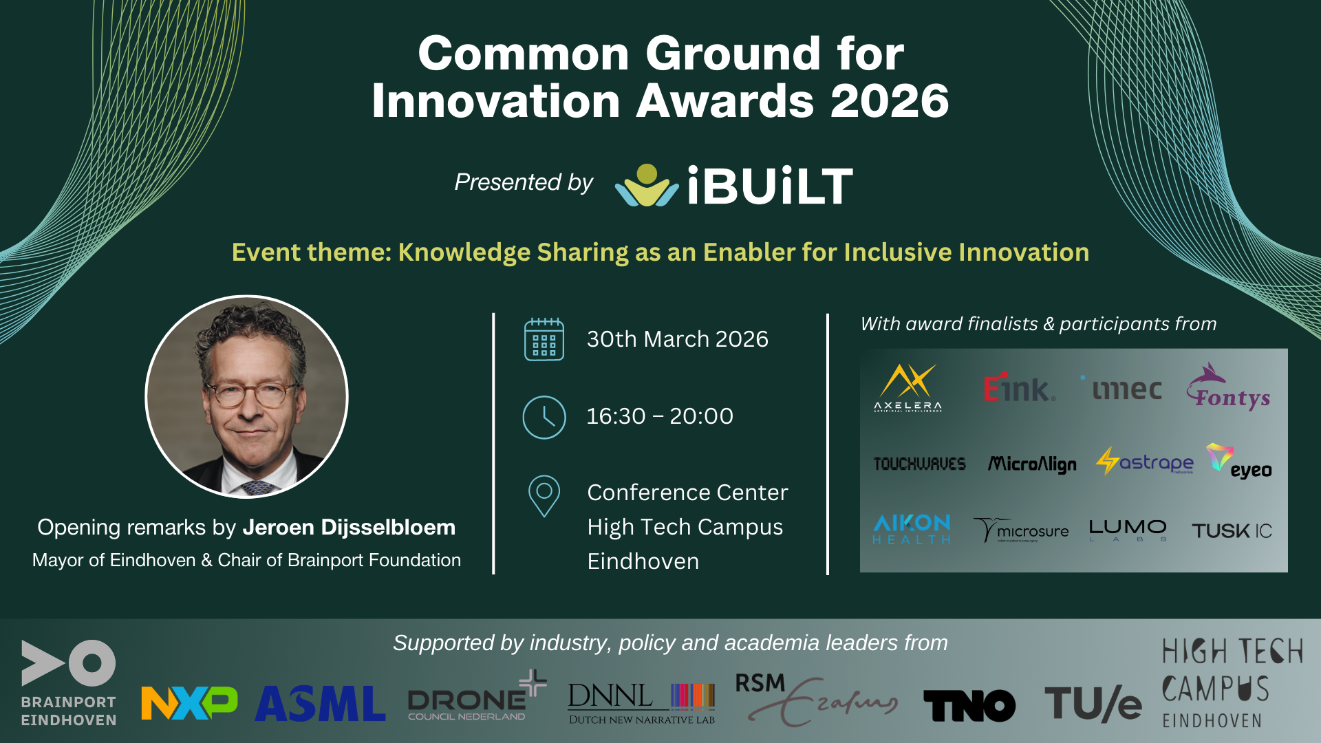 To highlight this special occasion, we are delighted to announce that Jeroen Dijsselbloem (Mayor of Eindhoven and Chairman of Brainport Foundation) will kick off the event with an opening speech, followed by an engaging keynote by Dr. Michael Houben. After an energizing break, we will dive into the state of inclusive innovation in Brainport Eindhoven with a carefully selected panel of industry, academia and policy leaders from renowned organizations like ASML, NXP, TNO, Eindhoven University of Technology, Rotterdam School of Management, Dutch New Narrative Lab and Drone Council Nederland.